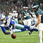 Prescott rebounded by making a tough throw to George Pickens on third down for a 15-yard gain to keep Dallas’ comeback hopes alive. He delivered a beautiful deep ball to Lamb that the receiver inexplicably dropped and would have been a massive gain into Eagles territory. Prescott’s last-ditch effort to find Lamb on the team’s final play out of what felt like the fastest two-minute warning ever, was too far from Lamb’s reach, even though Lamb laid out for the ball but once again could not bring it in.